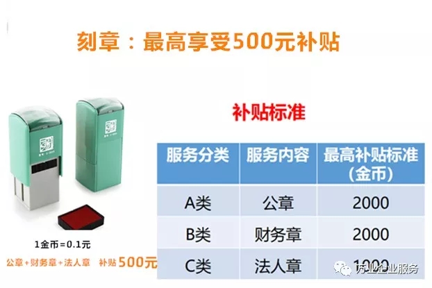 只要在云平臺上注冊認證成為創業企業,符合條件后即可免費申領創業金幣購買印章刻制和代理記賬服務,保障您享受優質創業服務的同時,降低你的創業成本!