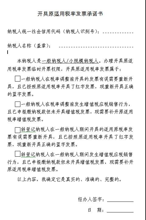 開具原適用稅率發票承諾書