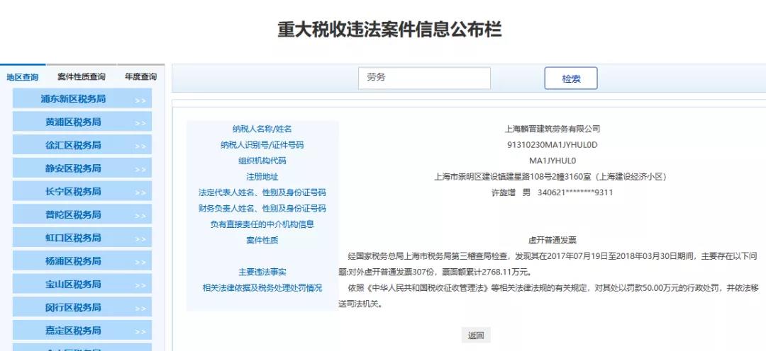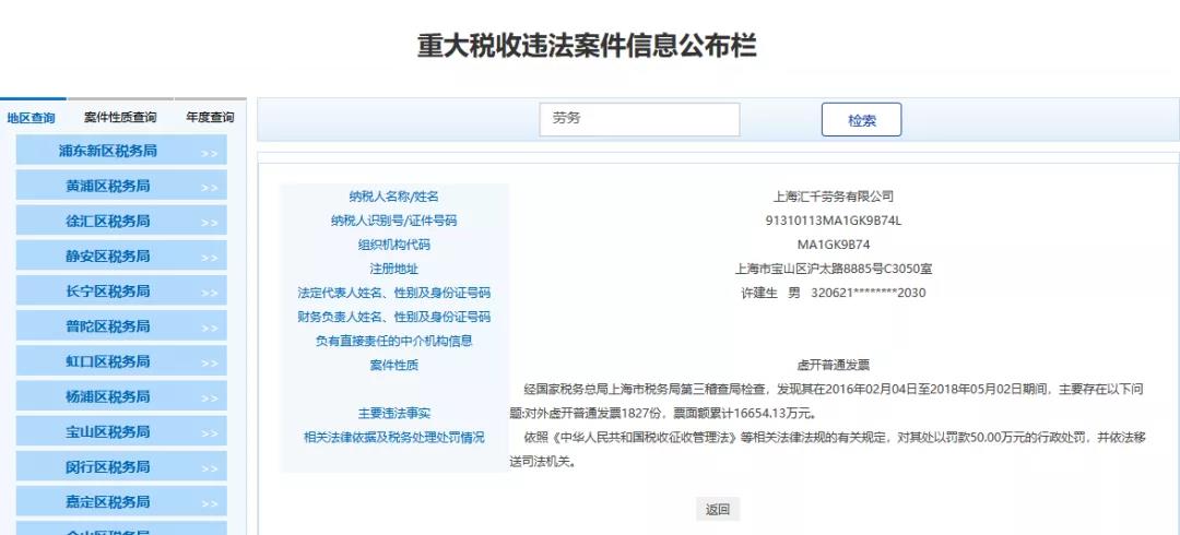最近魔都上海傳來大消息,多家勞務(wù)公司和人力公司被查,清一色的罰款+移送司法機關(guān),不難看出勞務(wù)公司一直是稽查重點,也是虛開的重災(zāi)區(qū),一查一個準(zhǔn)!