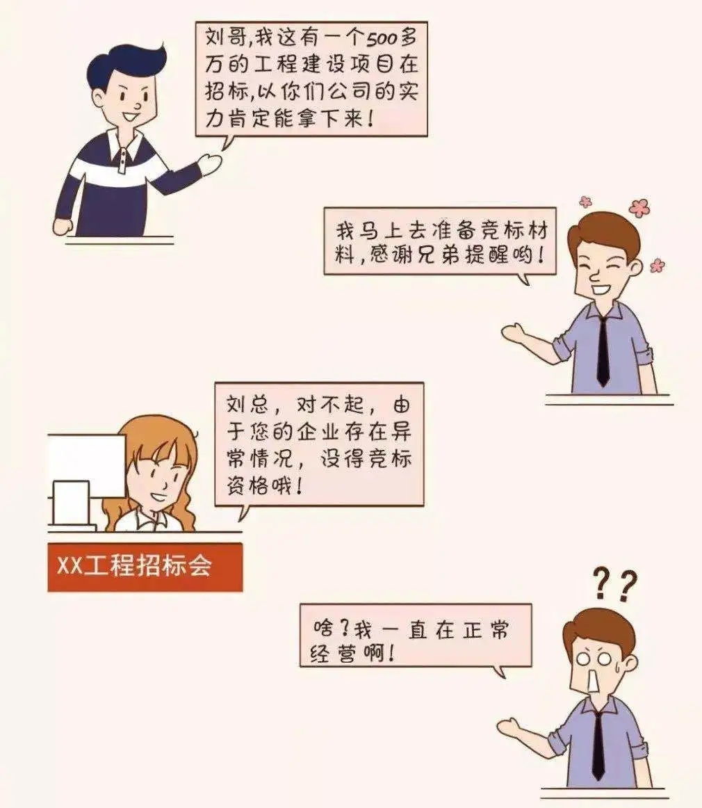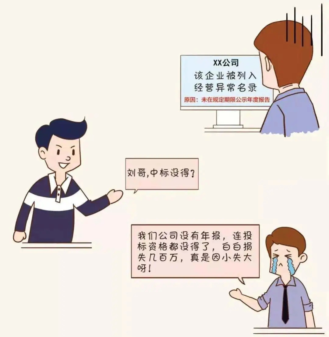 僅剩 7天 02企業合作信用受疑 現在是信用社會,信用對于人和企業來說都至關重要,大家都喜歡和有信用的人交往、合作。 被列入經營異常名錄,你看看誰還找你合作! 03經營活動受限 經營異常名錄信息現在也是 銀行等金融機構貸款、擔保等金融活動的 參考依據 老板 你好,我去年年報忘記報,現在被列入經營異常名錄,本來想著在阿里巴巴注冊一個網店,在網上做點小生意,結果被告知因為企業是經營異常名錄,注冊不了,這可怎么辦呀! 你好,首先應在國家企業信用信息公示系統補報年報,然后再準備好相關材料去當地市場監管部門申請移出哦。 小編 老板 好的,萬萬沒想到沒報年報的后果竟然這么嚴重,嚴重影響了我的經營活動,我真是后悔莫及。 是的,企業被列入經營異常名錄,那就有了信用污點,必須高度重視哦!對了,2019年度的年報馬上也要截止啦,請及時申報哦。 小編 老板 2019年度的年報我們公司馬上準備申報了,經過這次,以后一定不會忘了及時年報! 建議您盡早進行年報,避免因月底網站擁堵或企業自身數據方面準備不充分造成年報延遲。 小編 04列入嚴重違法企業名單 最最最嚴重的后果來啦! 列入經營異常名錄三年還沒有履行信息公示義務的企業,將被列入嚴重違法失信企業名單 企業五年內不能申請移出嚴重違法失信名單,法定代表人、負責人也將受到牽連,三年內不得擔任其他企業的法定代表人、負責人! 企業一站式服務平臺 工商注冊、財稅代賬、審計評估、稅務籌劃、商標專利、資質審批、人才獵頭、人才報名、金融保險、信用評級、法務咨詢、項目申報 公司網站:m.xiaomingmenye.com.cn 聯系方式:400-0551-976 合肥總部:安徽省合肥市南一環與馬鞍山路交口恒興廣場A座24樓 分部:合肥市行政服務中心一樓“萬業公司代理窗口”(工商局窗口正對面) 分部:合肥市瑤海區行政服務中心一樓“萬業公司代理窗口”(工商局窗口正對面)