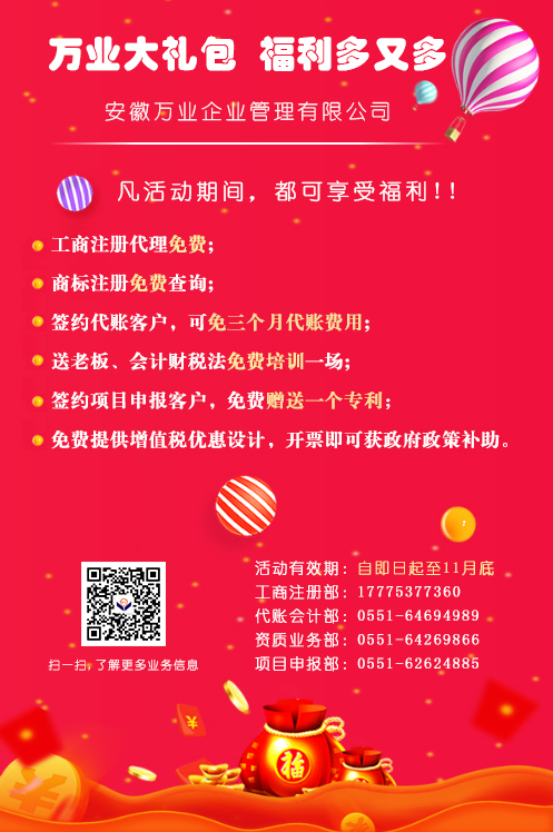 安徽萬業企業管理有限公司成立于2006年,從事企業服務十余年。公司主營業務:資質新報、升級、增項、公司注冊、財稅代賬、稅務籌劃、項目申報等業務。且已經成功辦理上萬家公司注冊、資質申辦業務及財稅代賬客戶上千家。