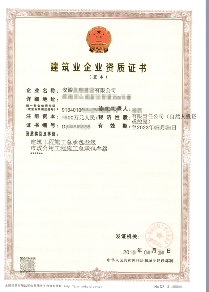 級別:建筑工程總包三級+市政三級