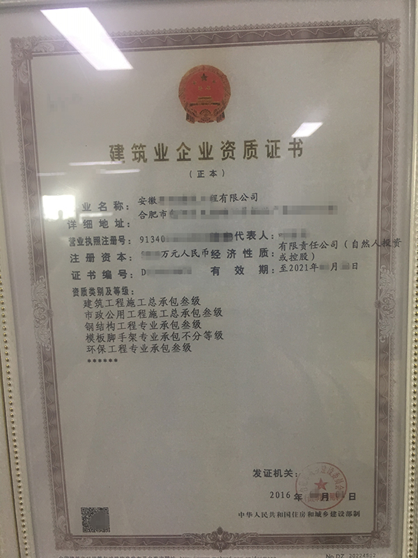 級別:建筑工程三級+鋼結(jié)構(gòu)三級+市政三級+環(huán)保三級+模板腳手架不分等級